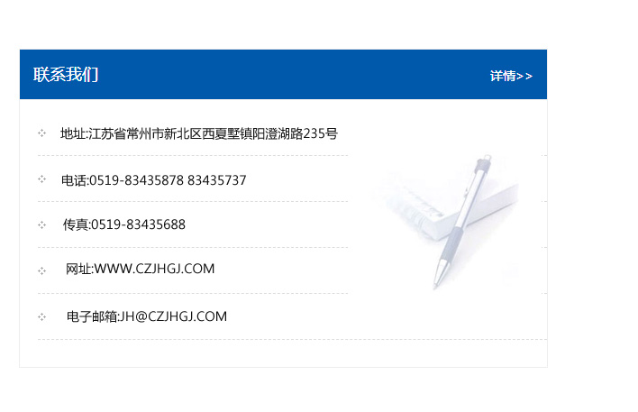 傳真:0519-83435688    郵編:213135    網址:WWW.czjhgj_com.mcjcjx.com    電子郵箱:JH@czjhgj_com.mcjcjx.com